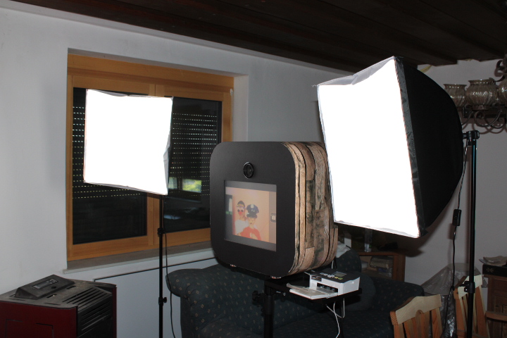 Bevor die Bühne aufgebaut wird, wird die Fotobox aufgestellt, das heißt die Fotobox kann schon ca. 2 Stunden vor Spielbeginn genutzt werden.